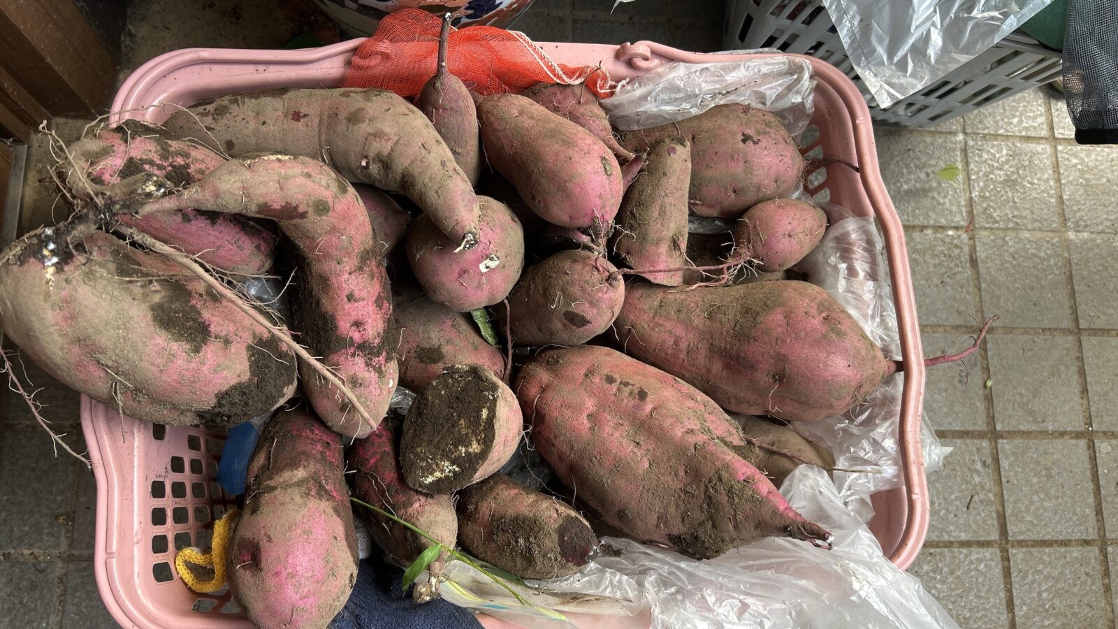 この日収穫してないさつまいもの土を掘り返してみたところ、想像以上の数のさつまいもが採れ、びっくりしています。