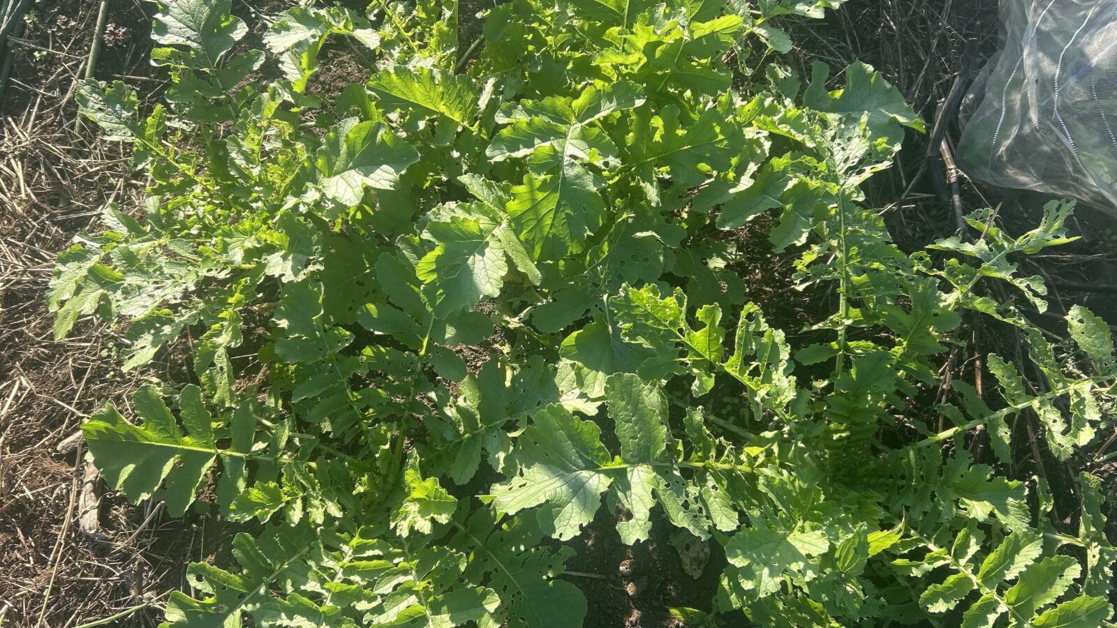 現状一箇所につき、2,3本のだいこんが植えられています。