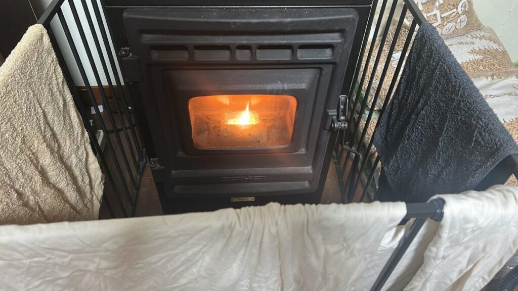 それとペレットストーブに火つける、炎になるまで見守るのが好きなことから、朝部屋を暖めて柵に洗濯物を干し、乾かすのを自然と行うようになりました。